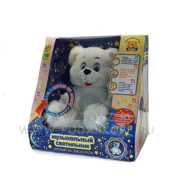 Игрушка мягкая.Музыкальный ночной светильник, исполняет песню "КОЛЫБЕЛЬНАЯ МЕДВЕДИЦЫ" из м/ф "УМКА", мерцают разноцветные огоньки.